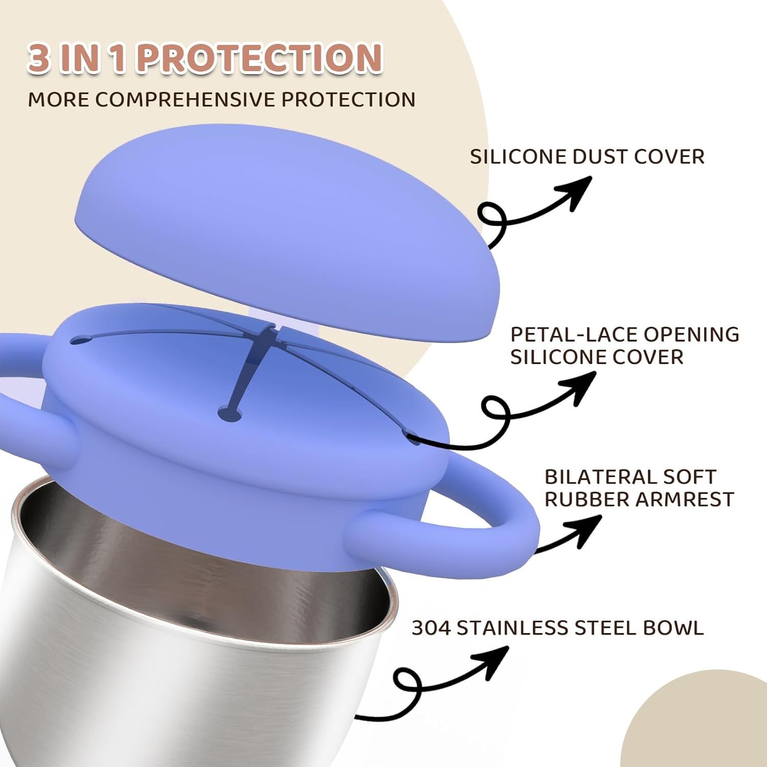 Snack Cups for Toddlers Spill Proof, 2 Pack Toddler Snack Containers with Silicone Lids & Handles, Safe and Durable, Stainless Steel Baby Snack Containers