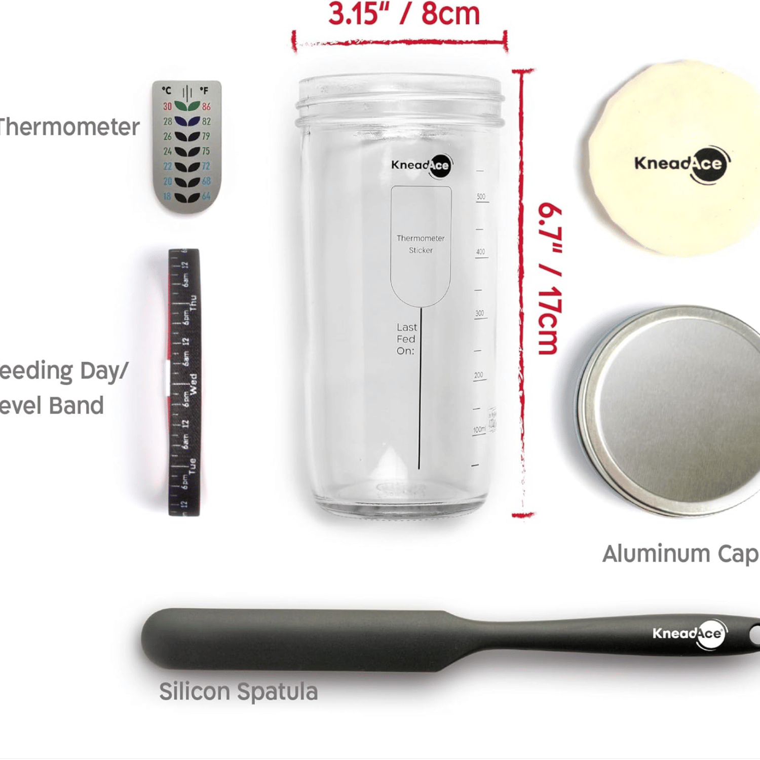 All-in-One Sourdough Kit: Includes 24oz sourdough jar, round & oval cotton rope proofing baskets, and magnetic bread lame for effortless sourdough bread bakingPerfect Sourdough Bread Kit: 24oz glass jar with feeding day tracker, thermometer, spatula, cloth cover and aluminum lid to ensures a healthy sour dough starter. Great for sourdough beginners or expertsBreathable Cotton Rope proofing bread Baskets: Maintain ideal dough hydration with round & oval proofing baskets designed for artisan sourdough bread. Sourdough basket, liners & Covers are all machine washableProfessional Scoring Tool: Extractable & magnetic bread lame for precision dough scoring with ergonomic design & razor-sharp blades to achieve beautiful bread patterns. A great companion to your bread making accessoriesUltimate Gift for Bakers: This bread making kit Thoughtfully designed makes the perfect baking gift. Ideal for beginners or sourdough enthusiasts looking to elevate their bread making journey